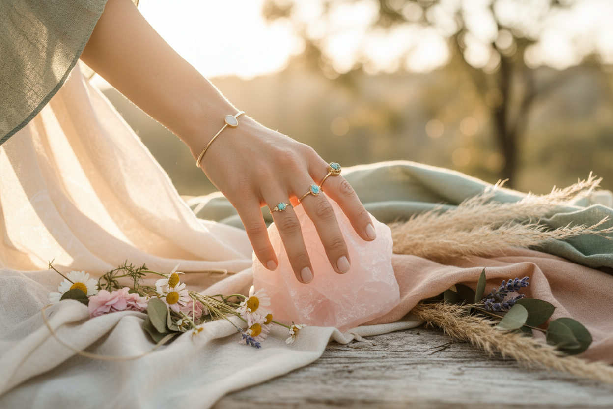 Une sélection délicate de créations en pierres naturelles et acier inoxydable.